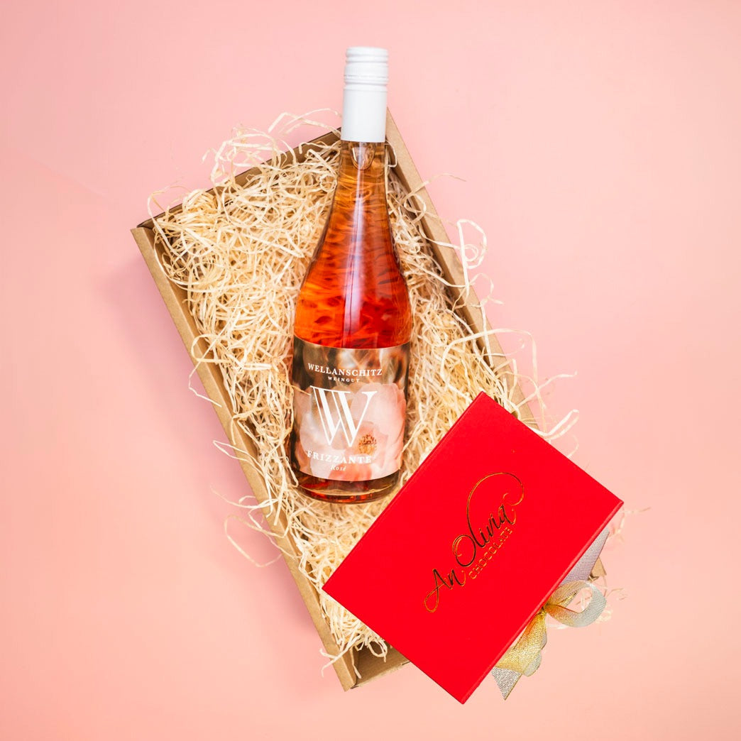 A fresh Rosé Frizzante. Artisan An Olivia chocolate. Beautifully boxed and delivered. She'll say you shouldn't have. She'll mean the opposite. A strong opening move.